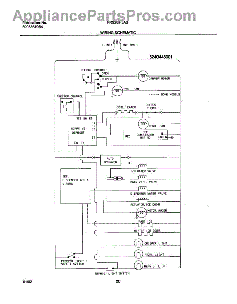 Parts for Frigidaire FRS26H5ASB0: 20 - Wiring Schematic Parts