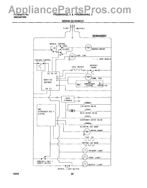 Parts for Frigidaire FRS26W2AQ3: 20 - Wiring Schematic Parts