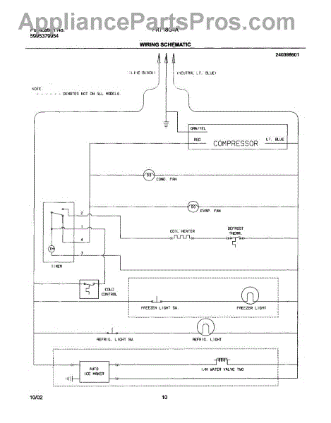 Parts for Frigidaire FRT18G4AWA: 10 - Wiring Schematic Parts
