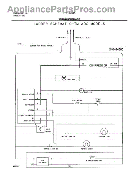 Parts for Frigidaire FRT18GS6AW0: 10 - Wiring Schematic Parts
