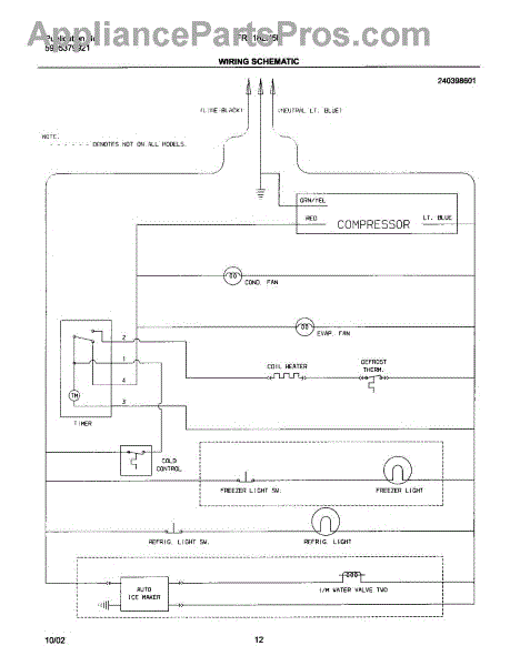 Parts for Frigidaire FRT18LN5BW2: 12 - Wiring Schematic Parts