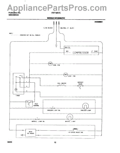 Parts for Frigidaire FRT18R7CW0: 12 - Wiring Schematic Parts