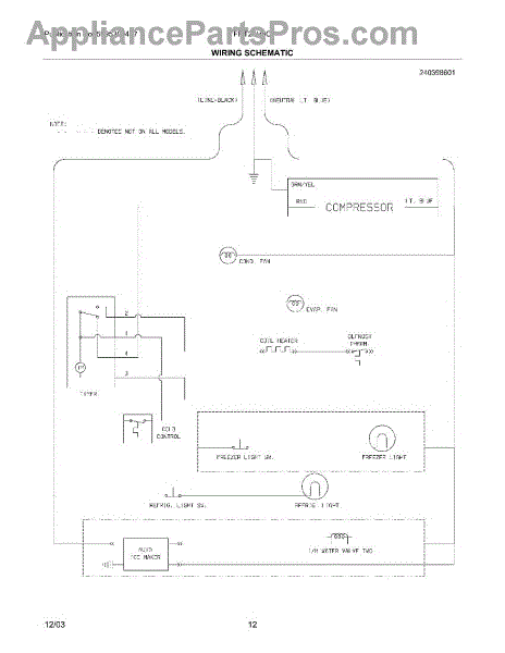 Parts for Frigidaire FRT21H8CW1: 12 - Wiring Schematic Parts