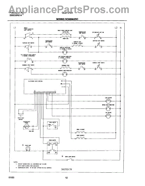 Parts for Frigidaire GLEF378AQG: 10 - Wiring Schematic Parts