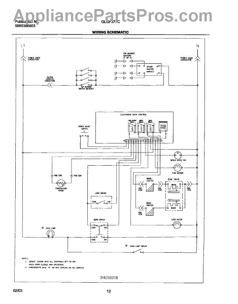 Parts for Frigidaire GLGF377CQA: 12 - Wiring Schematic Parts