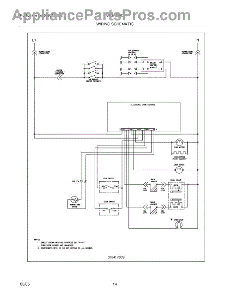 Parts for Frigidaire GLGF388DQC: 14 - Wiring Schematic Parts