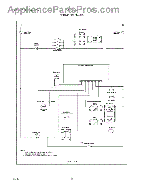 Parts for Frigidaire GLGFS75DQD: 14 - Wiring Schematic Parts