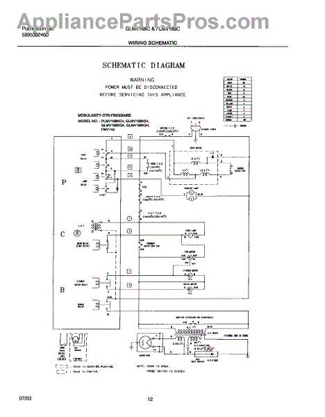 Parts for Frigidaire GLMV168CQ1: 12 - Wiring Schematic Parts