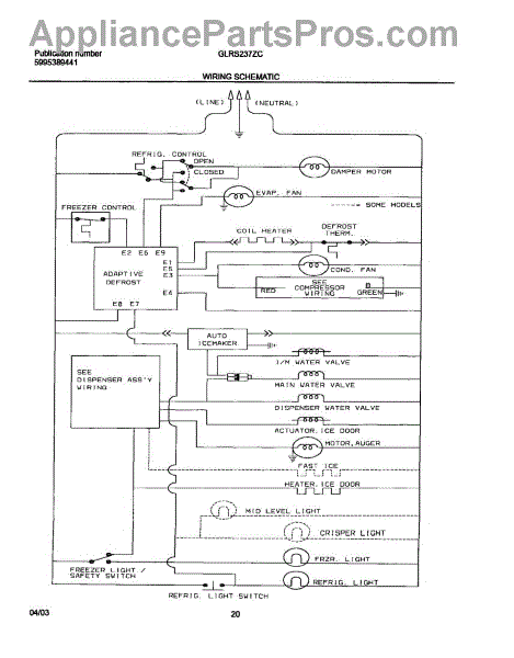 Parts for Frigidaire GLRS237ZCW0: 20 - Wiring Schematic Parts