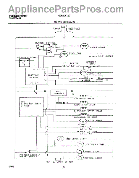 Parts for Frigidaire GLRS267ZCB0: 20 - Wiring Schematic Parts
