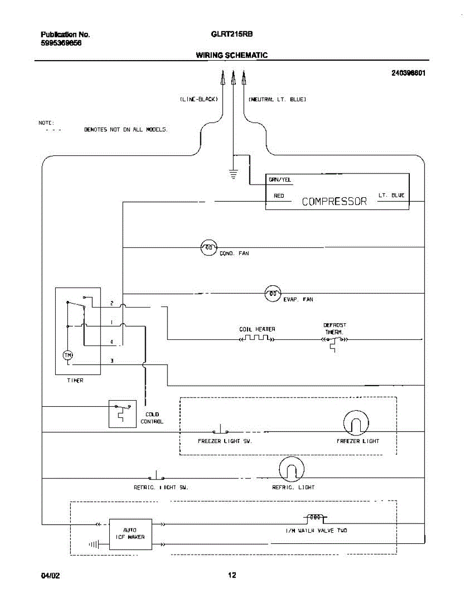 Parts for Frigidaire GLRT215RBB0: 12 - Wiring Schematic Parts
