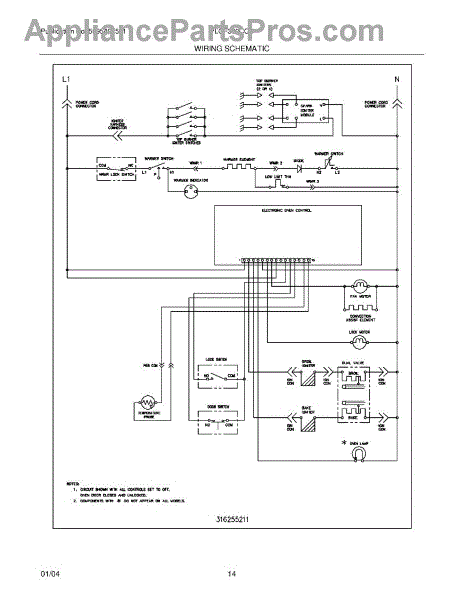 Parts for Frigidaire PLGF389CCD: 12 - Wiring Schematic Parts