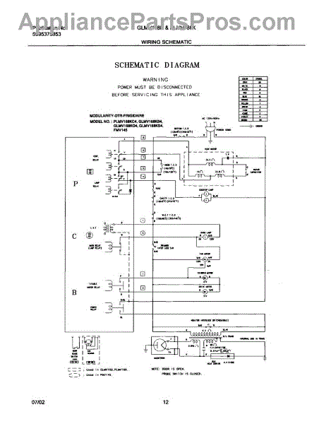 Parts for Frigidaire PLMV168KC4: 12 - Wiring Schematic Parts