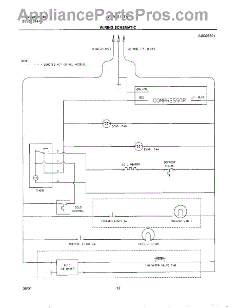 Parts for Frigidaire PLRT217TAK0: 12 - Wiring Schematic Parts