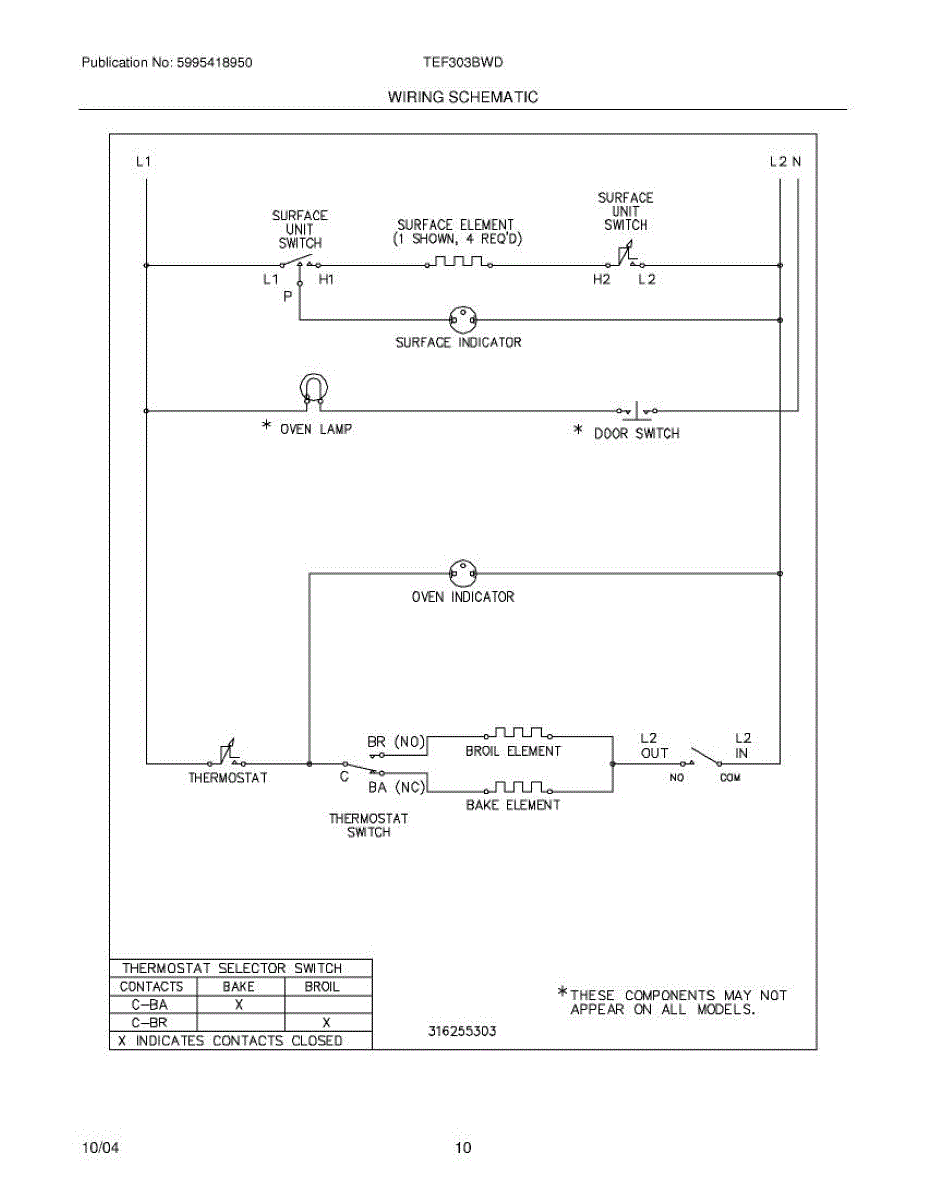 Parts for Tappan TEF303BWD: 10 - Wiring Schematic Parts