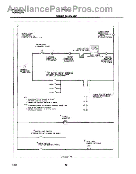 Parts for Tappan TGF317BUA: 12 - Wiring Schematic Parts