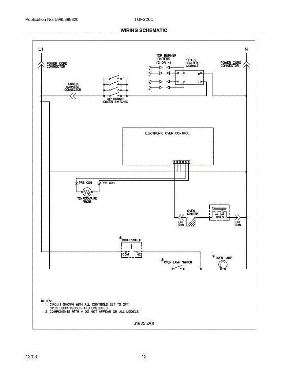Parts for Tappan TGFS26CSB: 12 - Wiring Schematic Parts