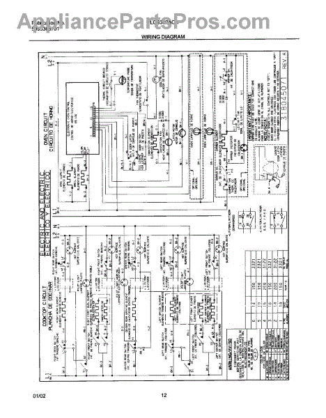 Parts for Frigidaire PLCS389ACA: 12 - Wirung Diagram Parts