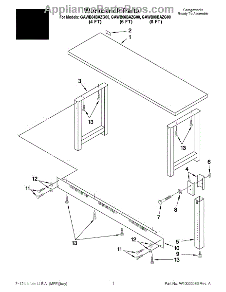 Parts for Whirlpool GAWB08BAZG00: 01 - Workbench Parts