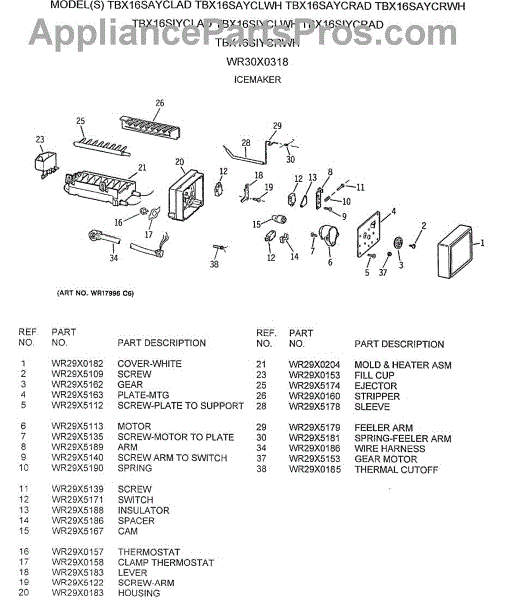 Parts for TBX16SAYCLWH