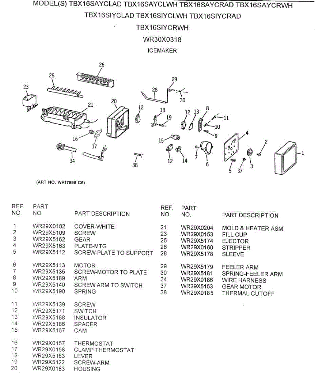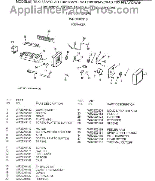 Parts for Ge TBX16SAYCLWH: 04 - Wr30x0318 Parts