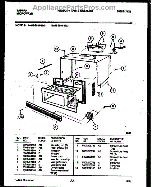 Parts for Frigidaire 56-2891-10-01: 03 - Wrapper And Body Parts