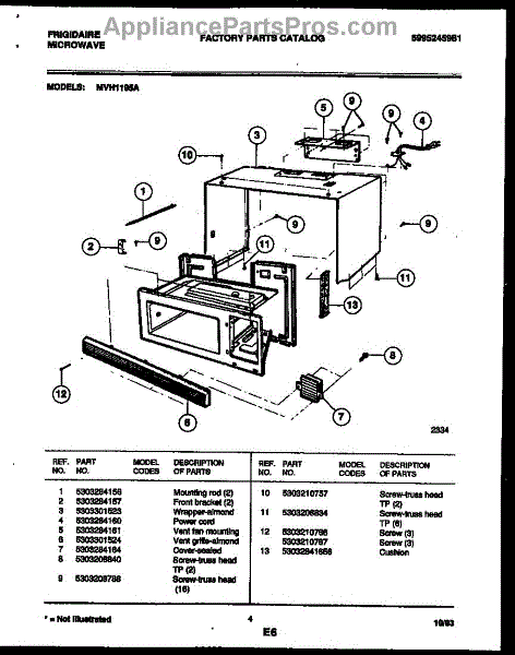 Parts for Frigidaire MVH1195A: 03 - Wrapper And Body Parts