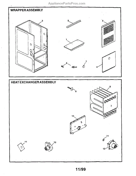 Parts for Goodman GMP150-5: Wrapper / Heat Exchager Assembly Parts