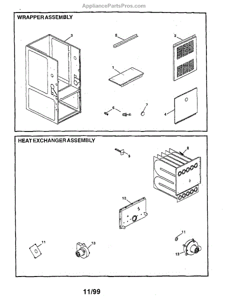 Parts for Goodman GMPH050-3: Wrapper / Heat Exchanger Assembly Parts