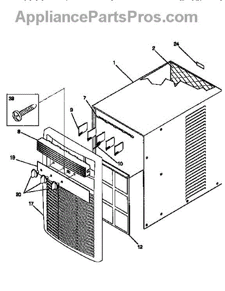Metal sheet-metal screw secures panels, brackets, and internal components. Replace when missing, stripped, or damaged to restore proper fit.