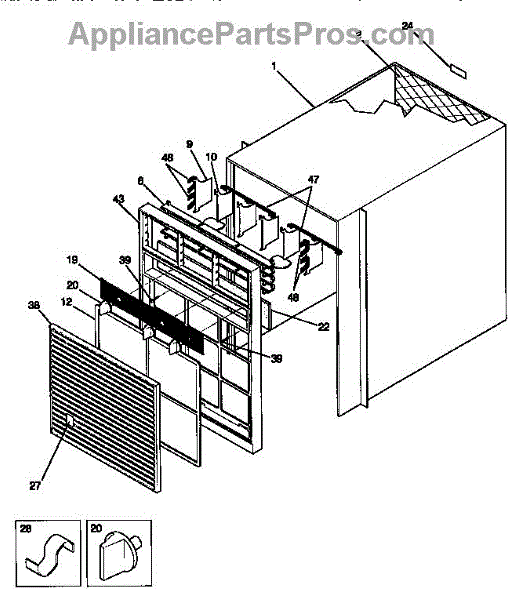 Front panel clip for air conditioners. Secures the front cover to the unit housing. Replace if cracked, broken, or missing to properly hold the door in place.