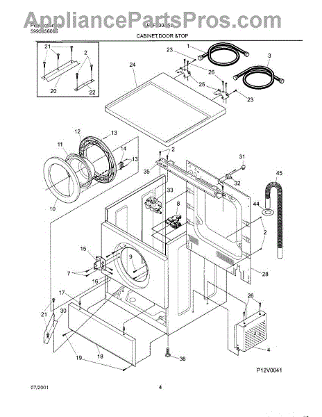 The Washer Drain Hose is an OEM replacement part for Frigidaire washing machines. It is a flexible, 7 ½ ft plastic hose that connects the washer tub to the household drainage system. The drain hose removes water from the washer at the end of each cycle. Symptoms of a faulty drain hose include: