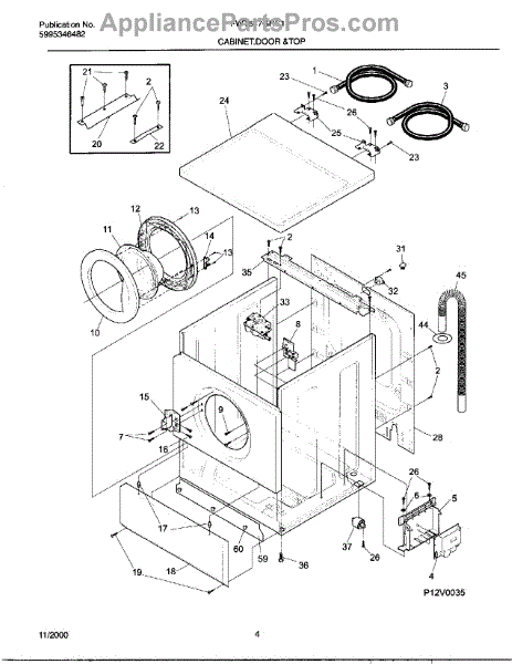 The Washer Drain Hose is an OEM replacement part for Frigidaire washing machines. It is a flexible, 7 ½ ft plastic hose that connects the washer tub to the household drainage system. The drain hose removes water from the washer at the end of each cycle. Symptoms of a faulty drain hose include:
