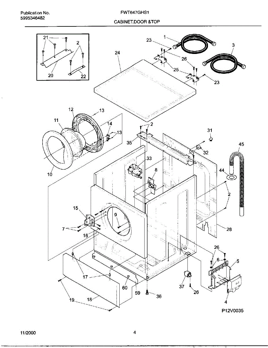 Protects the power cord where it passes through the washer cabinet. Replace if cracked, worn, or missing to prevent cord chafing and wire exposure.