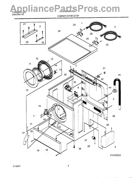 The Washer Drain Hose is an OEM replacement part for Frigidaire washing machines. It is a flexible, 7 ½ ft plastic hose that connects the washer tub to the household drainage system. The drain hose removes water from the washer at the end of each cycle. Symptoms of a faulty drain hose include: