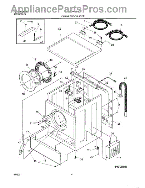 The Washer Drain Hose is an OEM replacement part for Frigidaire washing machines. It is a flexible, 7 ½ ft plastic hose that connects the washer tub to the household drainage system. The drain hose removes water from the washer at the end of each cycle. Symptoms of a faulty drain hose include: