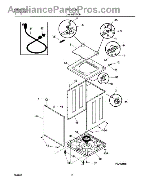 Parts for Frigidaire FWX221AS1: 03 - Wshr Cab,Top Parts