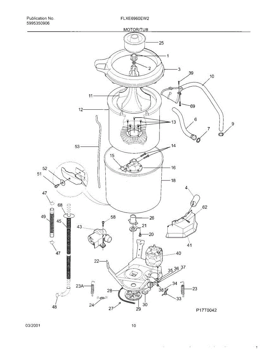 This tub-to-pump hose connects the washer's outer tub to the drain pump, channeling water out during the drain cycle. Replacing a worn hose helps stop leaks and restore consistent draining when the original is cracked or deteriorated.