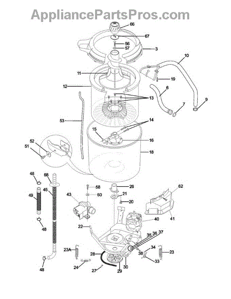 The trunnion is the hub that mounts the washer's inner tub to the drive shaft. Replacing a worn hub restores a solid, centered connection so the basket spins smoothly without wobble, slip, or grinding. What it does: