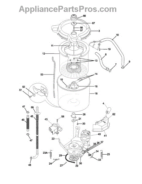The trunnion is the hub that mounts the washer's inner tub to the drive shaft. Replacing a worn hub restores a solid, centered connection so the basket spins smoothly without wobble, slip, or grinding. What it does: