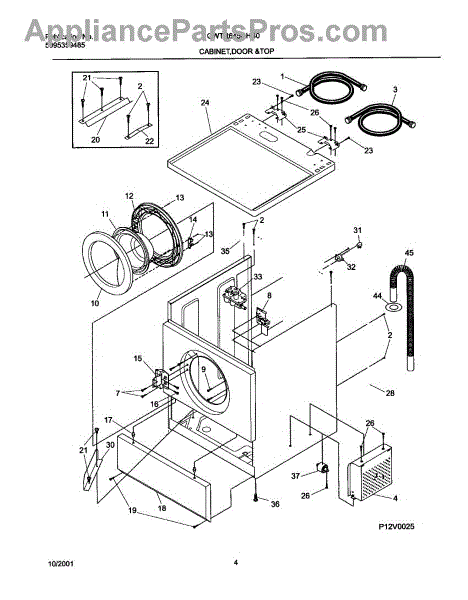 The Washer Drain Hose is an OEM replacement part for Frigidaire washing machines. It is a flexible, 7 ½ ft plastic hose that connects the washer tub to the household drainage system. The drain hose removes water from the washer at the end of each cycle. Symptoms of a faulty drain hose include: