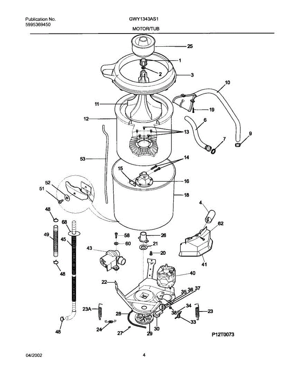 This tub-to-pump hose connects the washer's outer tub to the drain pump, channeling water out during the drain cycle. Replacing a worn hose helps stop leaks and restore consistent draining when the original is cracked or deteriorated.